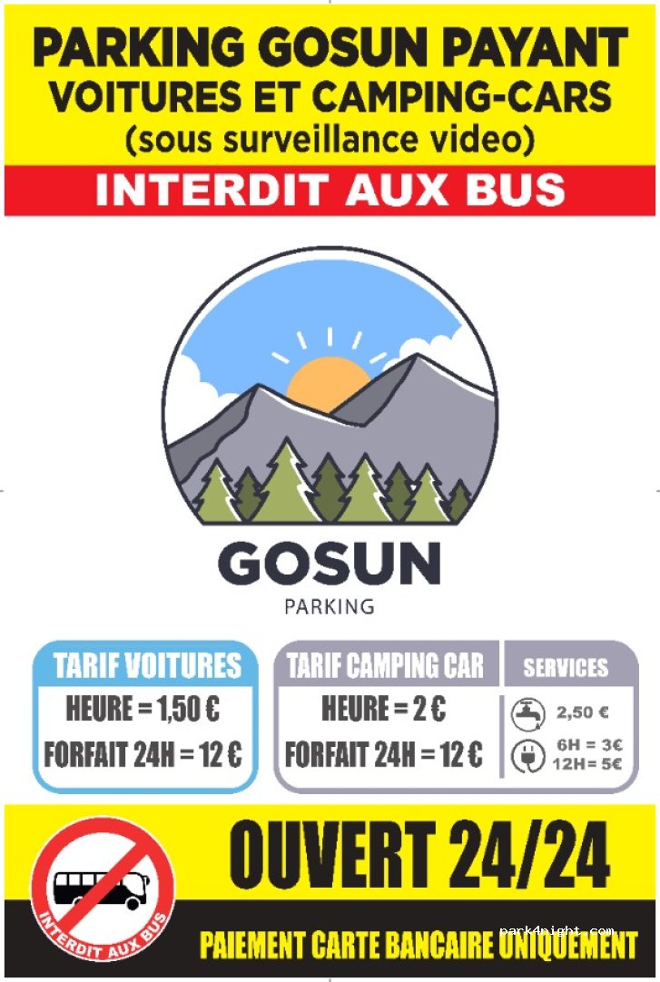 Le parking Gosun pour Camping car est situé à 7 minutes a pied des sanctuaires, ouvert 24/24 ouvert toute l'année .