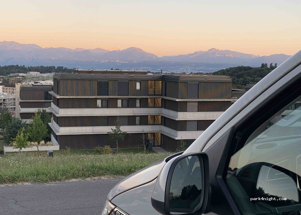 Parking 10 hours max with blue disc; quiet with view of Mont Blanc.