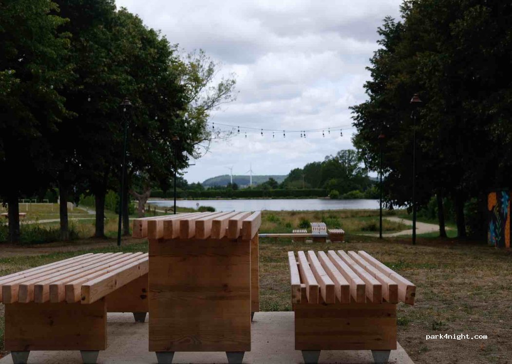 très bel endroit ombragé près de la piscine et de l étang. proches des commerces. Merci à la commune pour cet aménagement