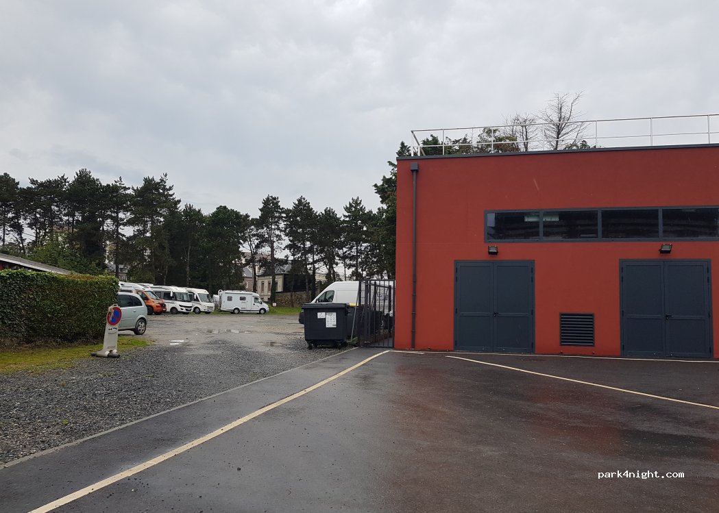 grand parking de niveau pour camping-car de toute tailles. poubelles de trie a l'entrée du parking. endroit très calme proche du centre-ville a env 2km de la plage de galet. j'y ai passé une nuit seule en toute sécurité nous étions une dizaine de camping-car.