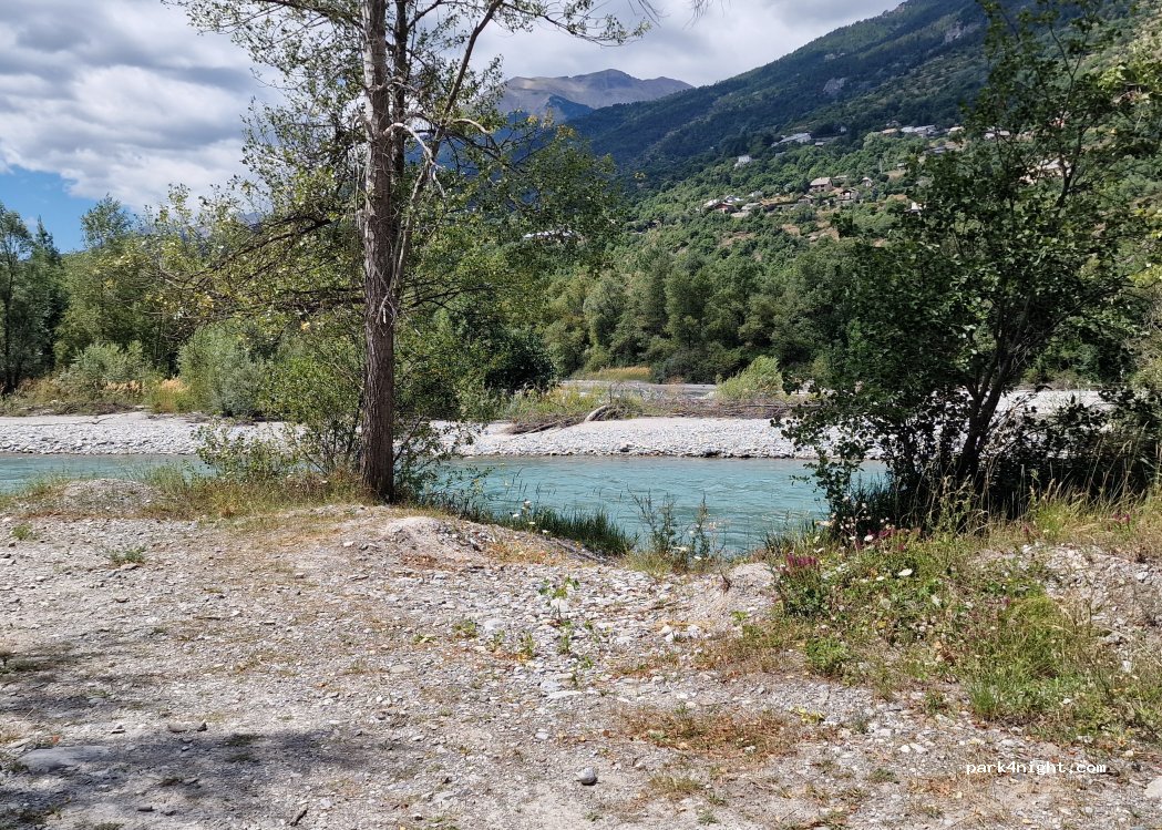 Small shaded area (4/5 vehicles max), dead end, on the banks of the Durance