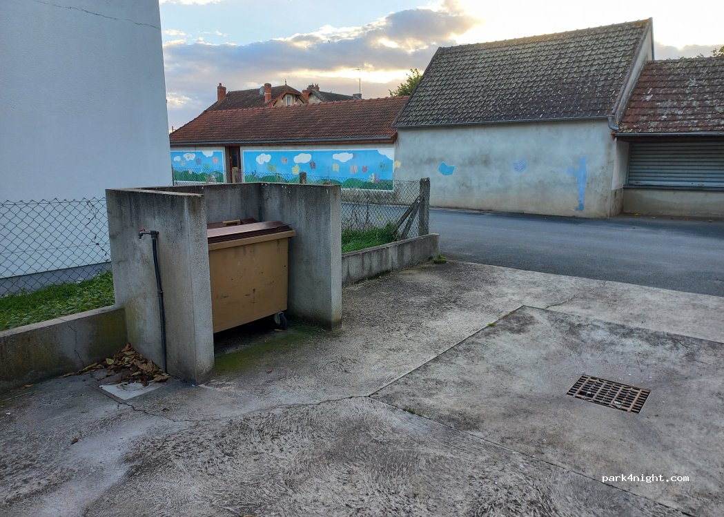 Merci à Mr le Maire de mettre à disposition une aire vidange gratuite. la vidange des toilettes se fait sur la grille centrale pensez à laisser PROPRE celle ci, les autres CC ne sont pas la pour nettoyer. Des commerces dans la commune .Un grand parking en terre pour stationnement . 15 mn de Montlucon.