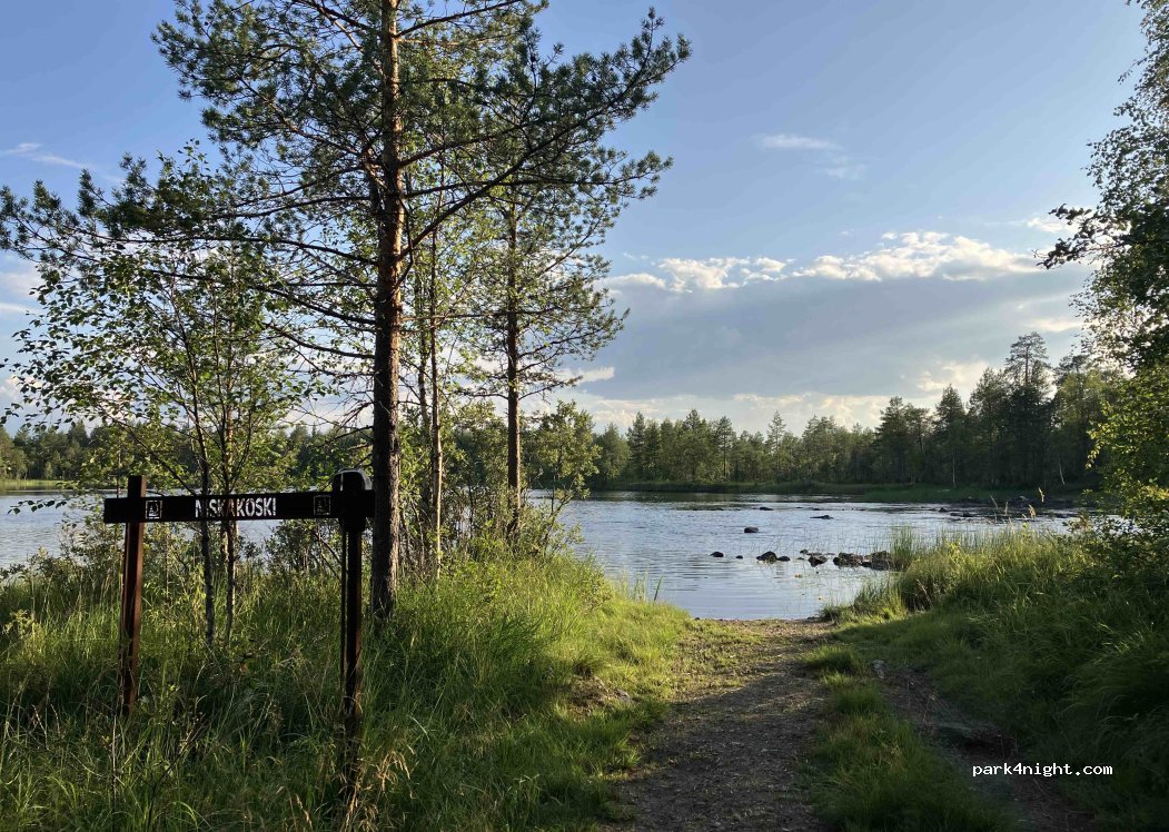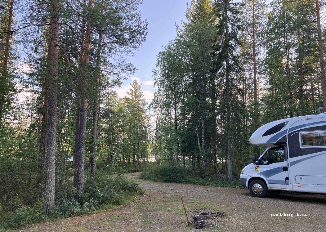 Pequeño estacionamiento para una o dos autocaravanas. Solo paramos aquí para descansar, pero probablemente también se pueda dormir. La cabaña parece tener un baño. El sitio está designado como zona oficial de pesca y navegación. Hay una fogata disponible. ¡Cuidado con los baches!