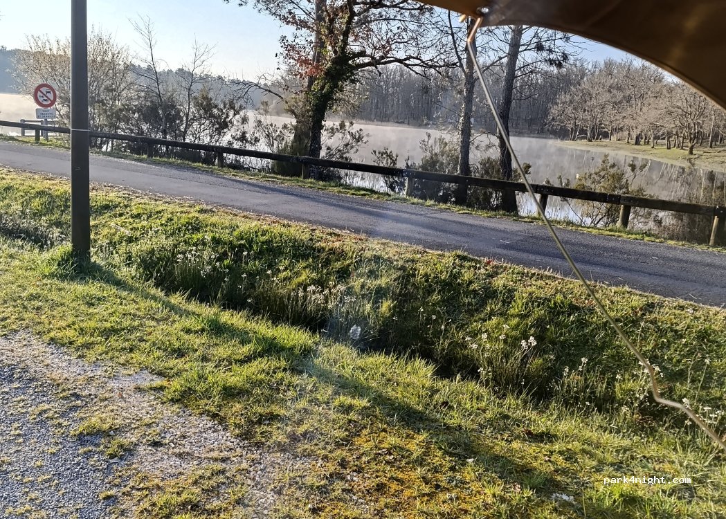 Effectivement espace calme, mais interdiction de dormir sur place, un arrêté municipal est affiché sur le tableau d affichage. Par contre le camping d en face est très bien.