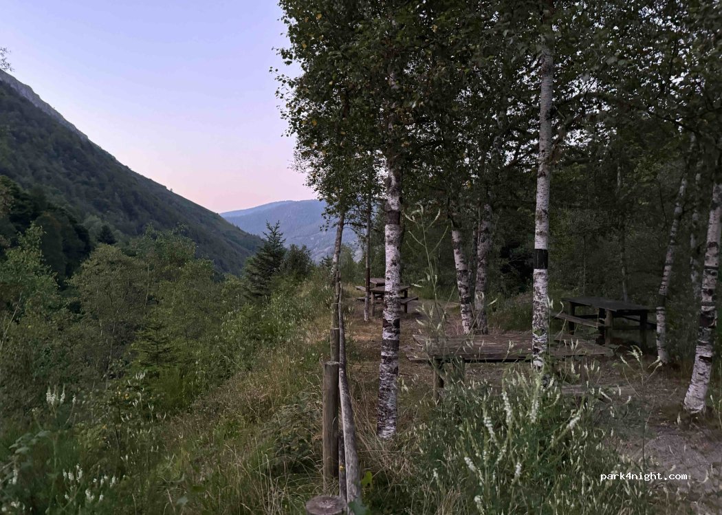 Endroit en pleine nature, rien à dire. Tout seul la nuit. Table et 1 barbecue à disposition sur le haut du parking. Point de départ pour le lac de Conte à 2h de marche quand il fait beau c'est top. Petite cabane à 1h de marche pour passer la nuit seul loin de tout.