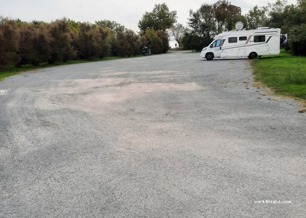 Lieu de stationnement stabilisé sans service excepté les poubelles sur place, où nous avons passé la nuit au calme. Passage au-dessus de nous de vols de cygnes. De belles balades à faire dans les marais et le long de l'estuaire. Merci de tolérer la présence des CC la nuit.