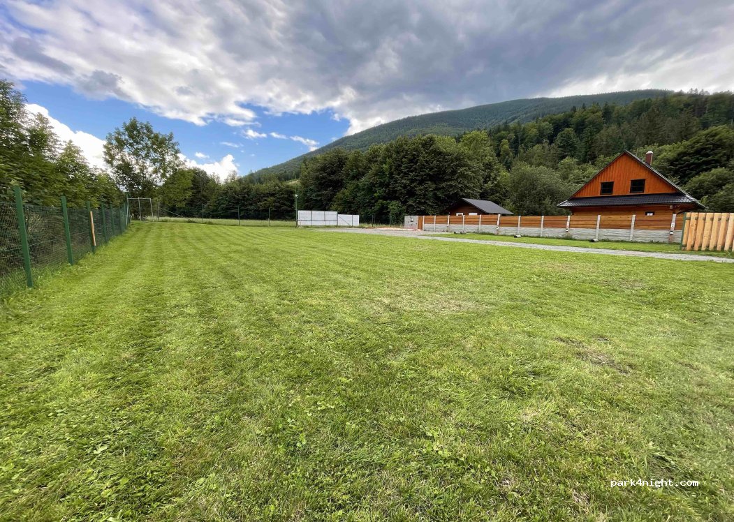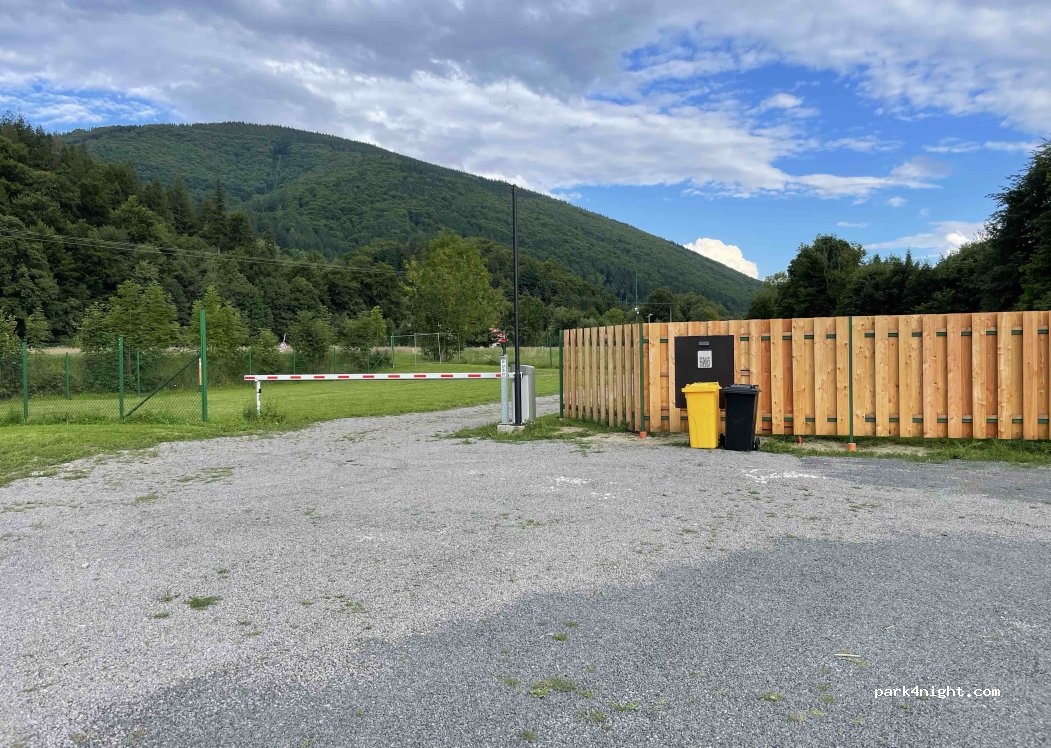 Parking lot with services for motorhomes and caravans in the Beskydy Protected Landscape Area.