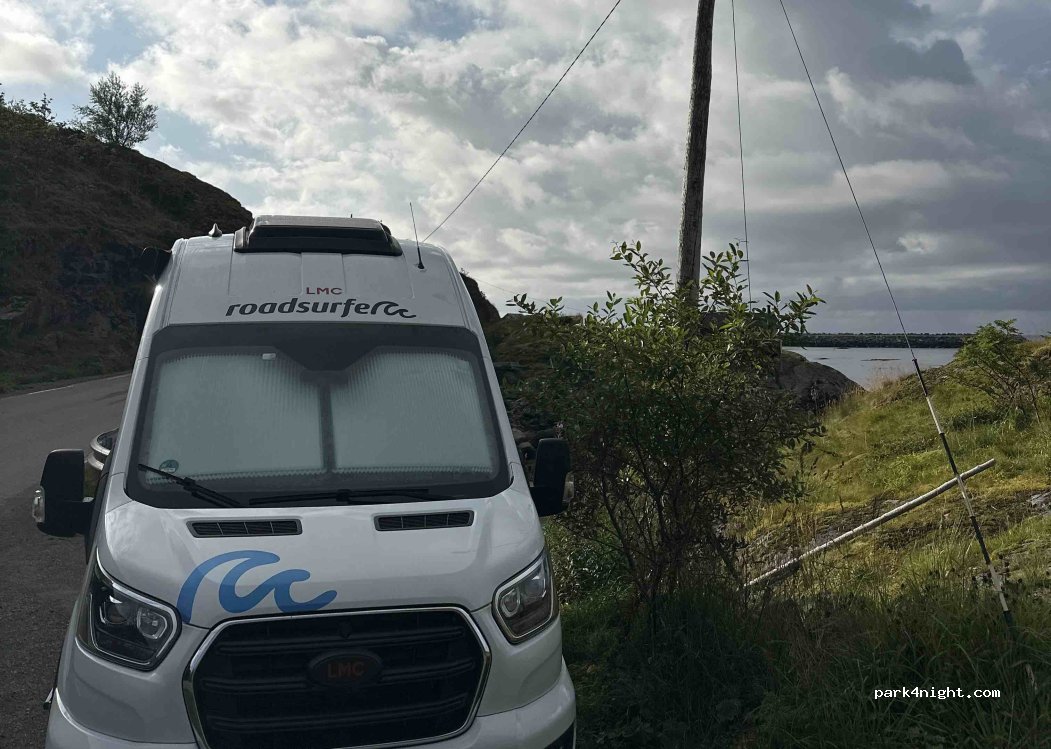 Lage am Straßenrand. Für eine Nacht ok. Ziemlich ruhig. Toller Meerblick mit kleinem roten Haus.