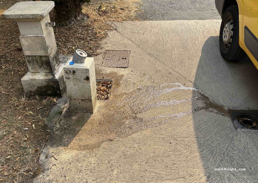 Parking où vous pouvez vidanger vos eaux grises et noires. Il y a aussi un robinet d'eau, mais on ignore si elle est potable.