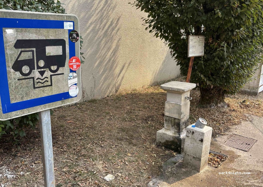 Parking were you can empty gray and black water. There is also a water tap but it’s not known if it’s drinkable.