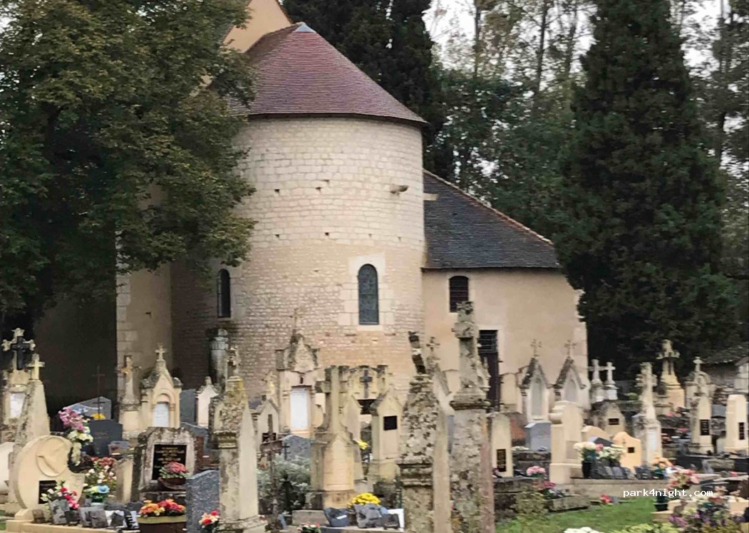 Y avons passé une nuit. Endroit très calme. Sol plat en enrobé. Maximum 2 camping-cars. TNT. 4g. Avons eu le plaisir lors de notre visite de l'église d'avoir des explications sur les fresques peintes aux murs (les plus vieilles de France) par le voisin membre de l'association bénévole de la crèche.