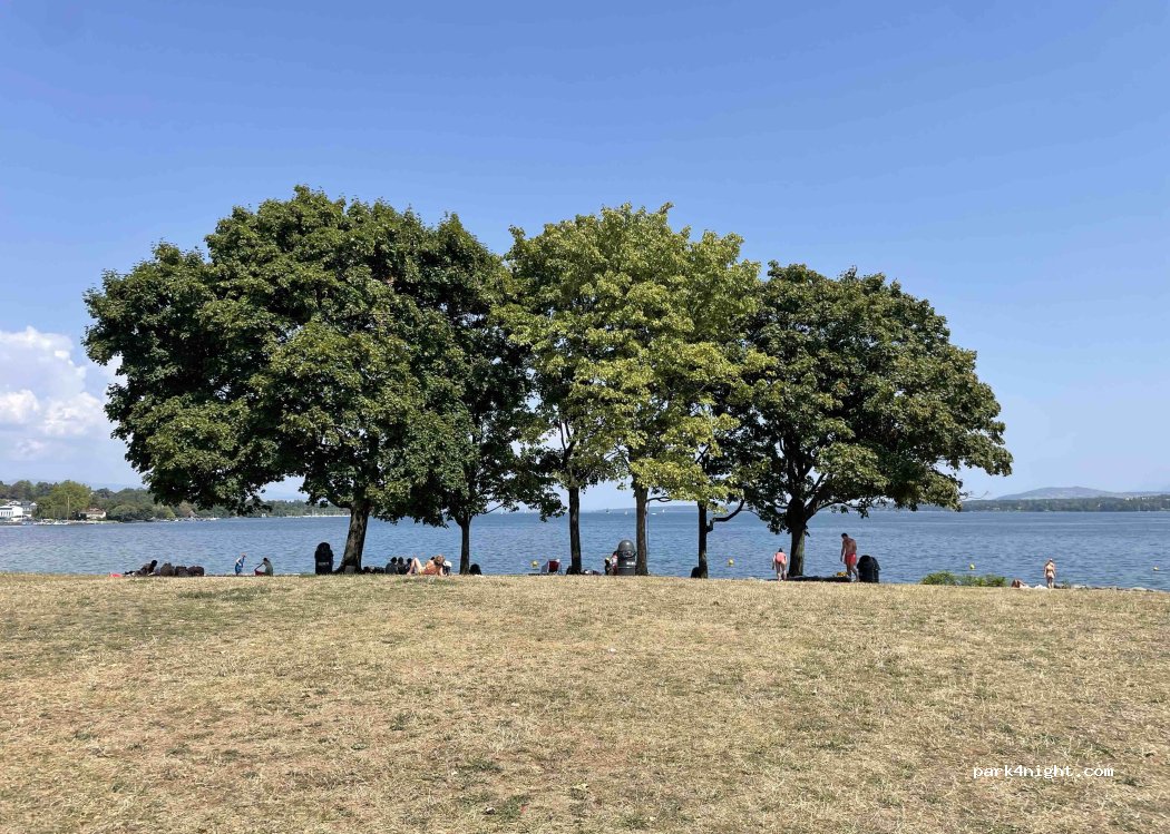 Tagsüber gebührenpflichtiges Parken. Parkverbot zwischen 0:00 und 8:00 Uhr. Duschen, Toiletten und Umkleidekabinen befinden sich in unmittelbarer Nähe. Eine schattige Rasenfläche mit herrlichem Blick auf den Genfersee lädt zum Essen und Entspannen ein. Grillmöglichkeiten stehen zur Verfügung.