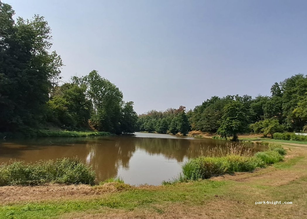Möglichkeit zum Angeln und für Spaziergänge im Wald, entlang eines Teichs.