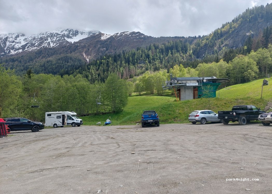 Ruhiger Parkplatz mit tollem Blick auf den Mont Blanc. Der Skilift war nicht in Betrieb. Für eine längere Pause gut geeignet. Keine Müllentsorgung vorhanden. Gerne wieder.