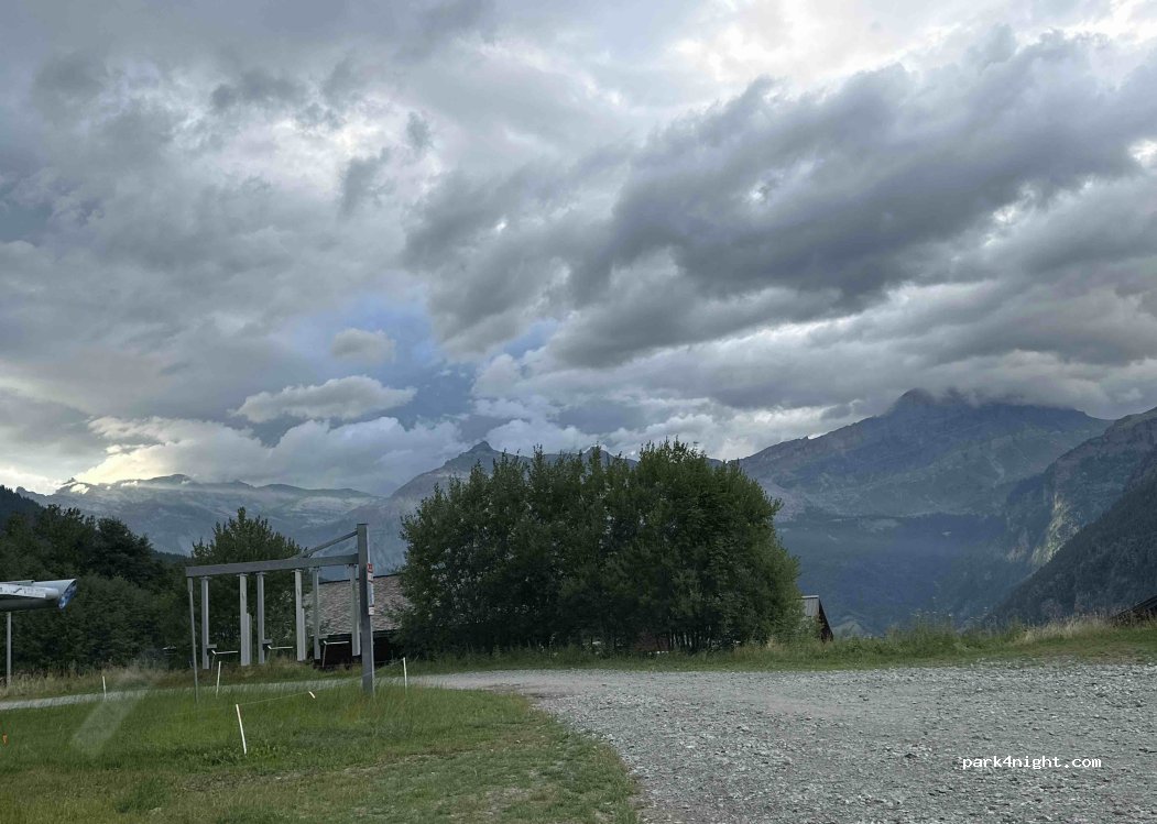 Nous sommes tombés par hasard sur ce parking en cherchant un point de départ de la randonnée de la passerelle de Bionnassay. Impossible d’aller plus loin, la route se transforme en chemin. Nous y avons donc passer la nuit c’était calme et plat. Pas mal de moustique.