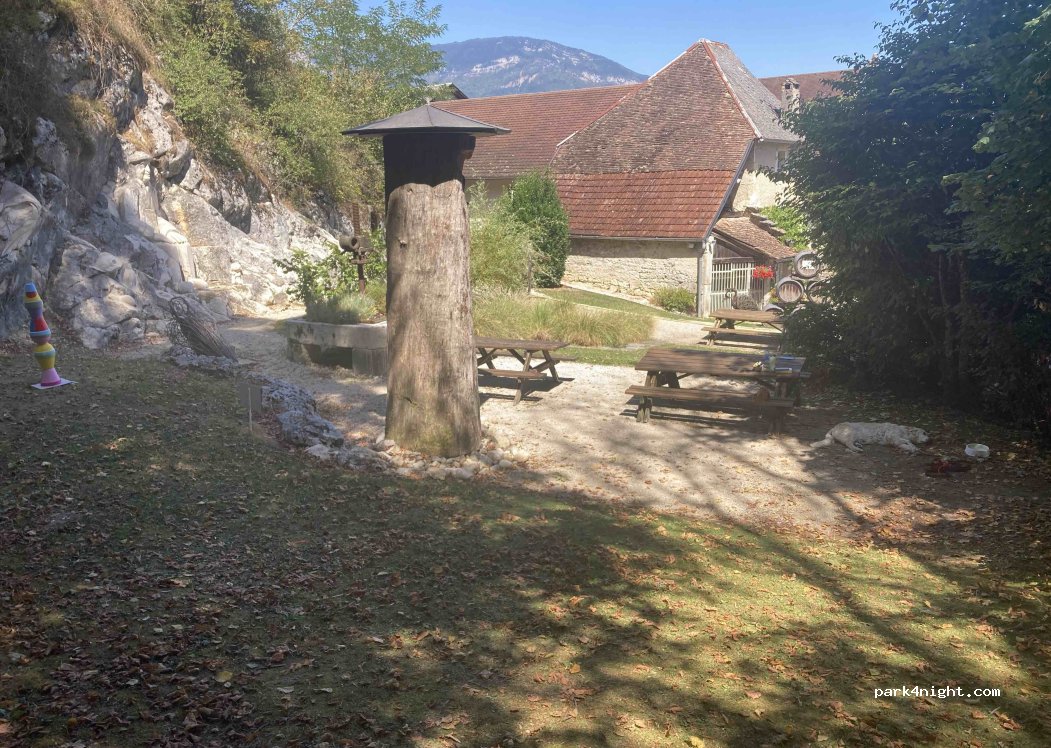 Halte dans un véritable petit paradis : emplacement bien aménagé, village magnifique, musées très instructifs grâce au travail sur le long terme des propriétaires du Caveau bugiste. Ce village et la gentillesse des gens valent le détour. Les 2 emplacements conviennent aux vans et petits véhicules, mais il y a des places de parking pour visiter.