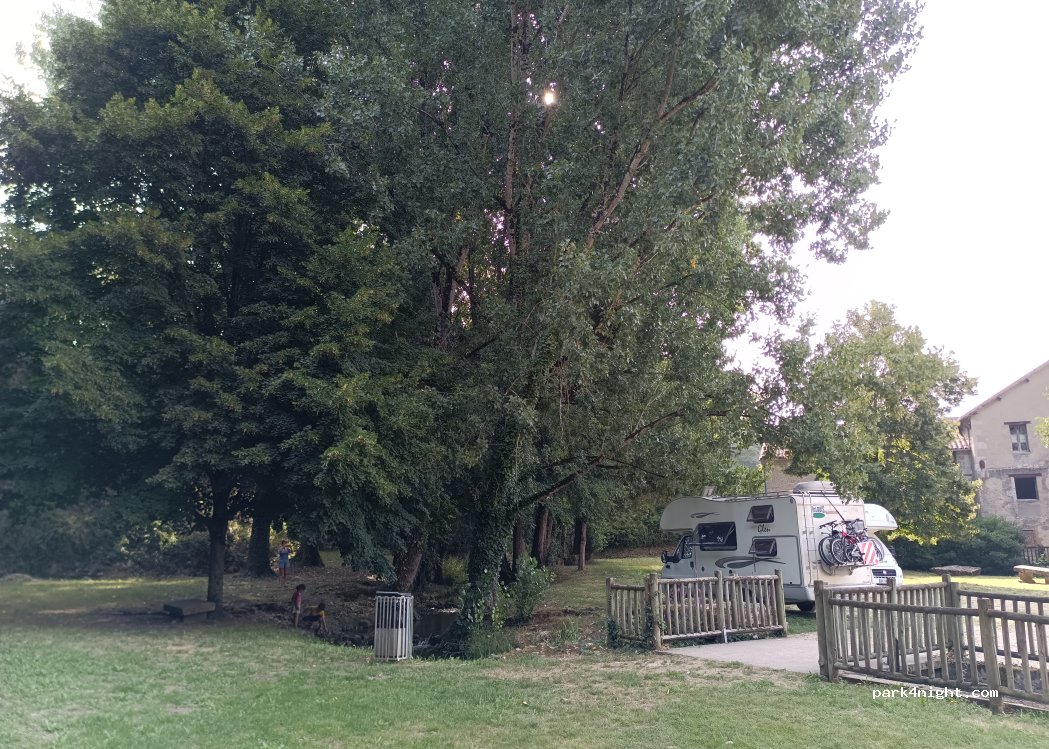 Joli spot avec petit ruisseau, ombragé, plat et très calme. Nous y avons seulement pique niqué car les toilettes étaient malheureusement fermés et aucun accès à l'eau. De joli balades à faire dans ce petit village, notamment des abris sous roche et un musée de la préhistoire à visiter.