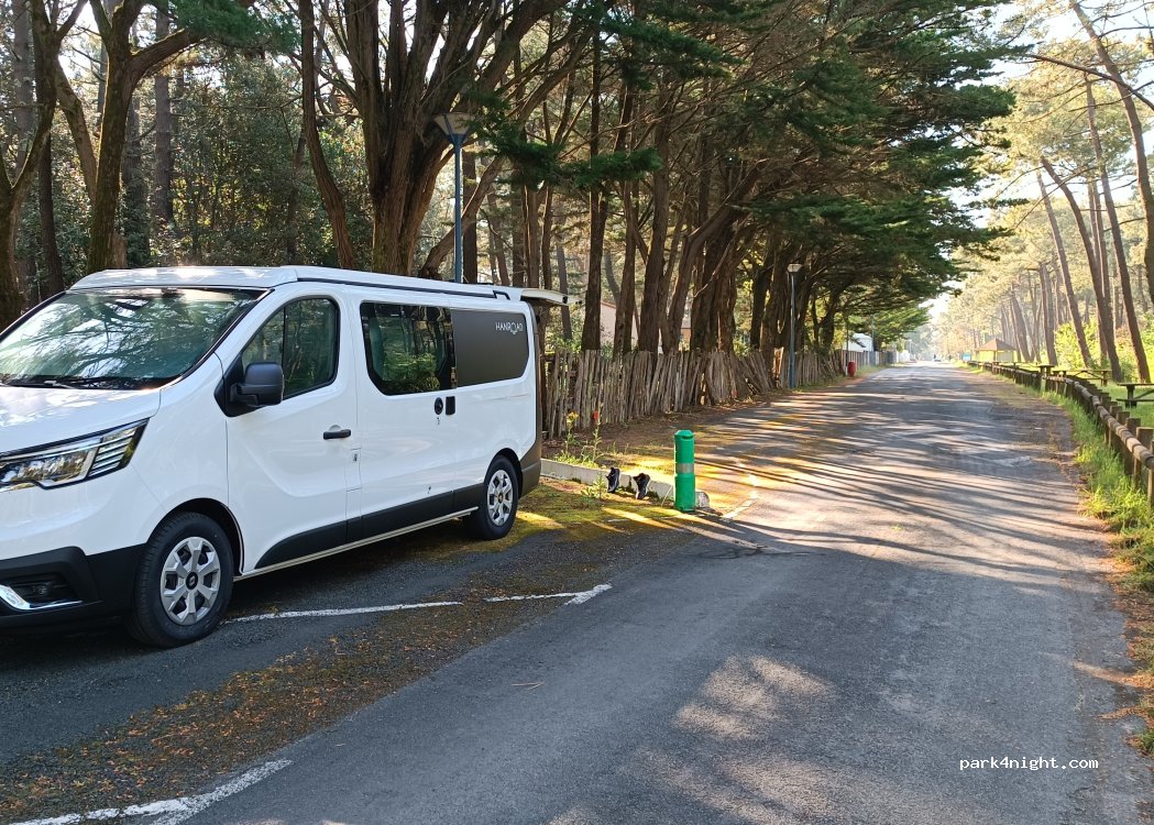 Parking spaces near the Barrique Beach and the Longeville national forest. Very quiet area. We slept one night without a problem. WC nearby and picnic tables. Small vehicle only