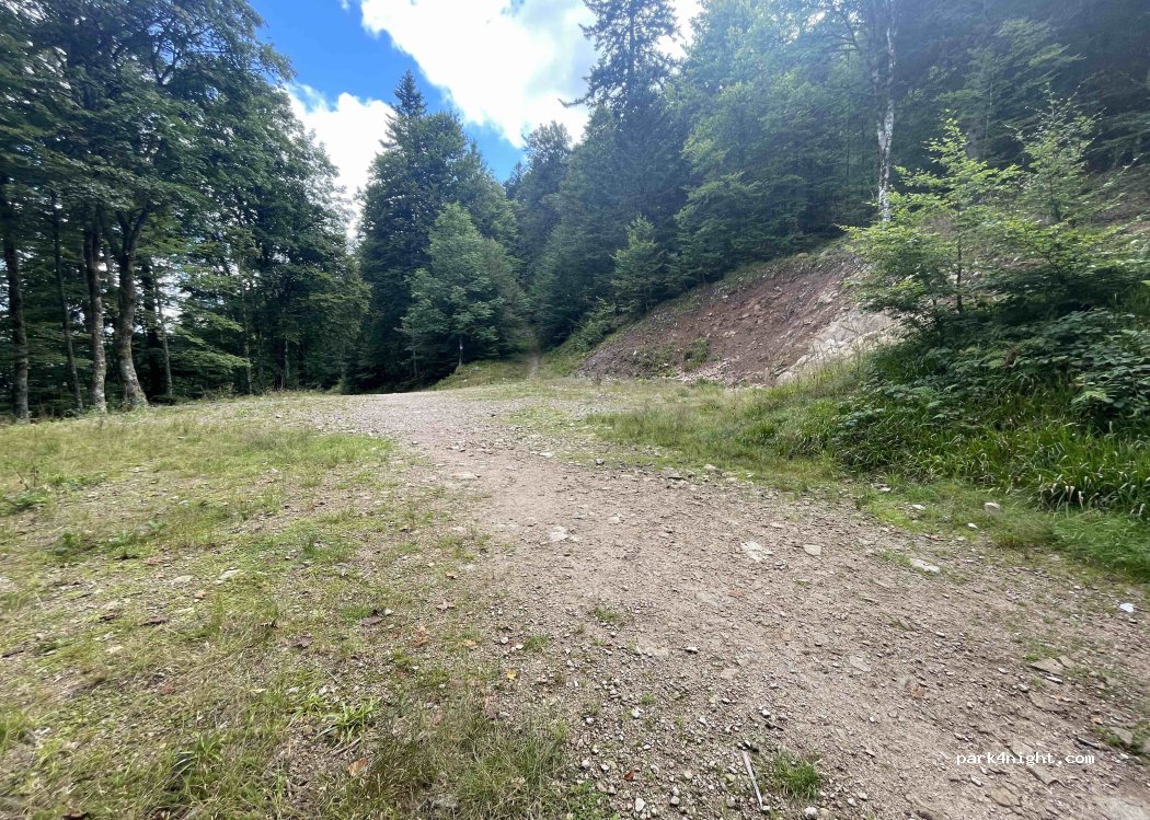 Grand espace au milieu de la forêt .plutôt pour les fourgon .Lieu magique pour aller au rocher du lac du corbeau