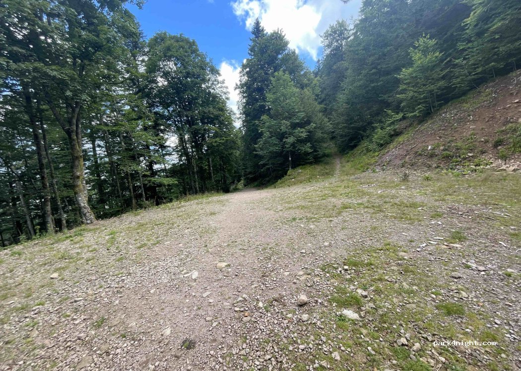 Large space in the middle of the forest. More for vans. Magical place to go to the rock of the Raven Lake.