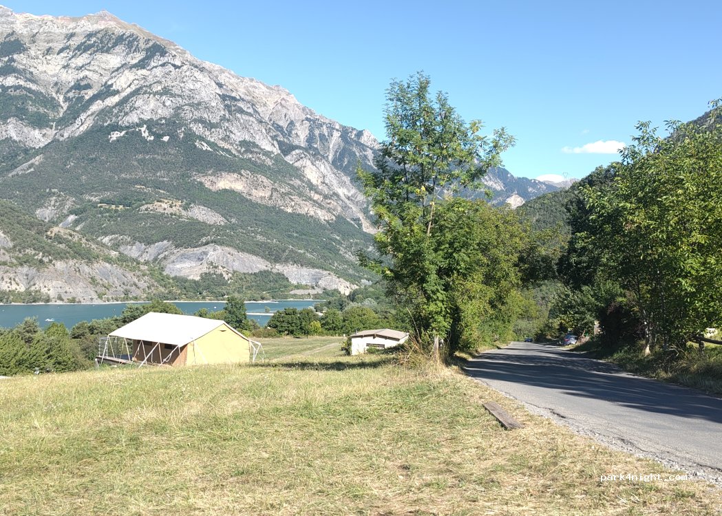 Situé à 850 mètres d'altitude, dominé par les forts de Saint-Vincent-les-Forts, à la frontière des Alpes de Haute Provence et des Hautes-Alpes, au pied du lac de Serre-Ponçon, avec vue sur le Grand Morgon (2324 m) et Dormillouse (2505 m).