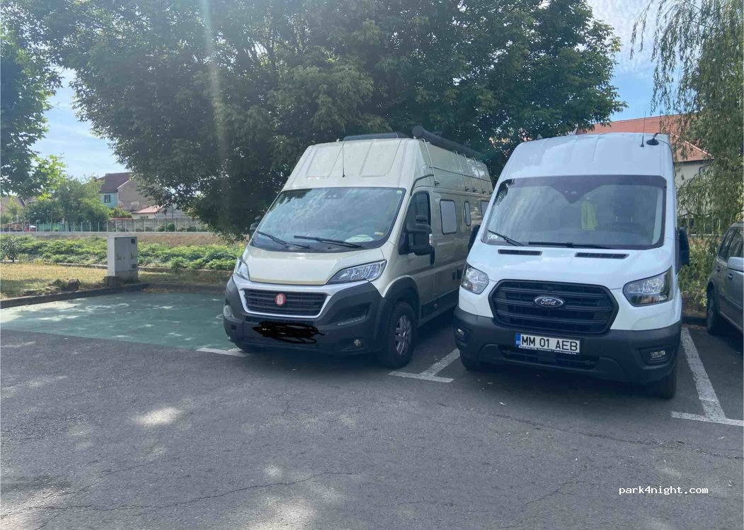 Der Parkplatz liegt direkt an einer Straße und ist nur nachts halbwegs leise, wenn man nahe am Fluss parkt. Einen Parkautomaten gibt es nicht, wir haben eine Tagesticket für 10,50 RON per App mit Kennzeichen und Kreditkarte vor 8 Uhr gebucht, kostet es von 8 bis 20 Uhr in der ganzen Stadt. Die Stadt und ein Supermarkt sind ganz in der Nähe.
