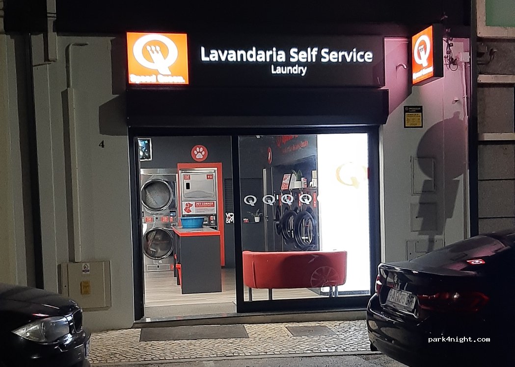 Speed Queen Laundromat. It looks new, small but very cozy with a red sofa and chairs, four washers and four dryers, plus a washer and dryer for pet clothes. I didn't do laundry there, I just walked past it. It has a TV and some decorative plants. Plenty of street parking nearby; check Google Maps.