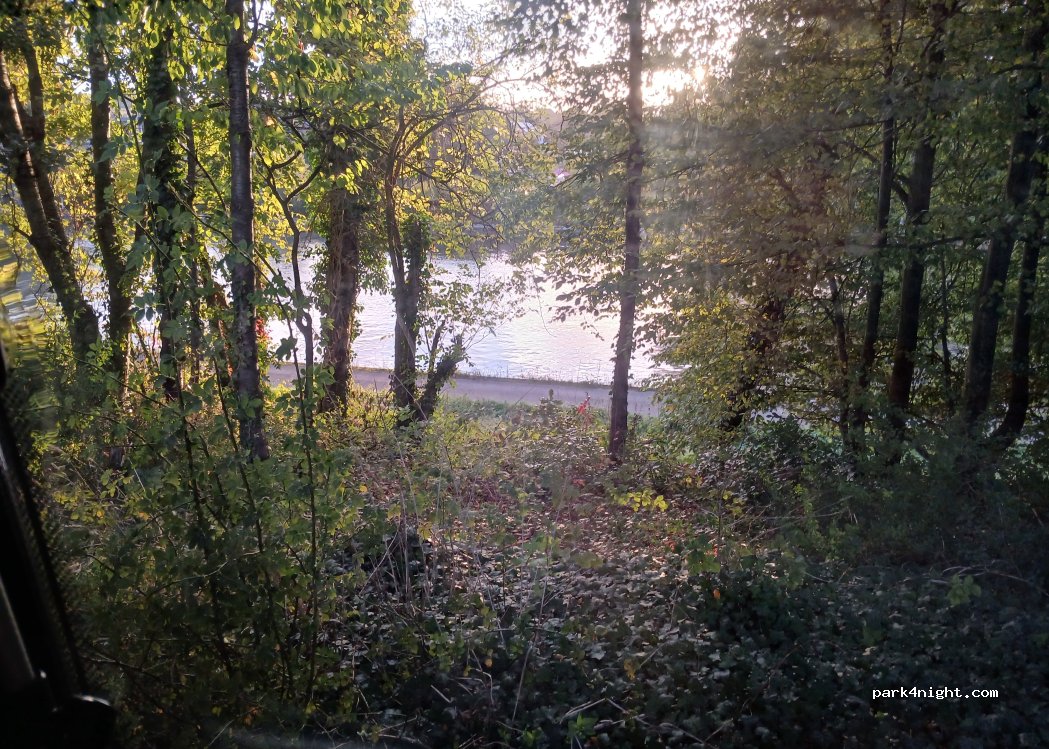 arrivé tardivement sur ce grand parking ça depanne. mais c est pas terrible. très bruyant samedi soir fond musical jusqu'à 3h du matin. bruit d'eau et de route.