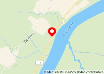 Joli parking le long de la E6 et de la rivière. Toilettes, aire de pique-nique. Parfait pour la nuit.