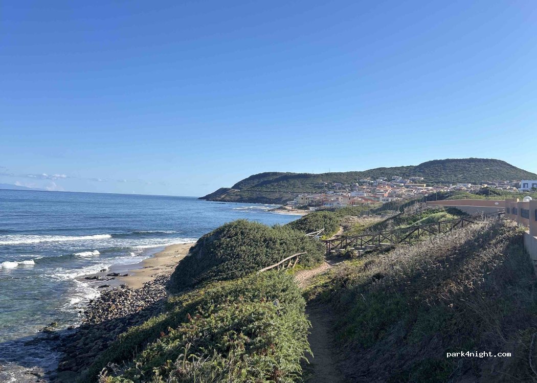 très calme en hors saison. de nombreuses places, légèrement en pente. mais belle vue sur île Asinara.
