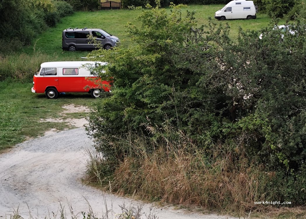 Parking verdoyant, avec des toilettes/urinoir/évier, beaucoup d’espace, et à 10 mètres de la plage ! Hauteur limitée à 2.10m (que d’un côté !! Vous pouvez passer par l’autre entrée (3m plus loin) qui n’a pas de limite)
