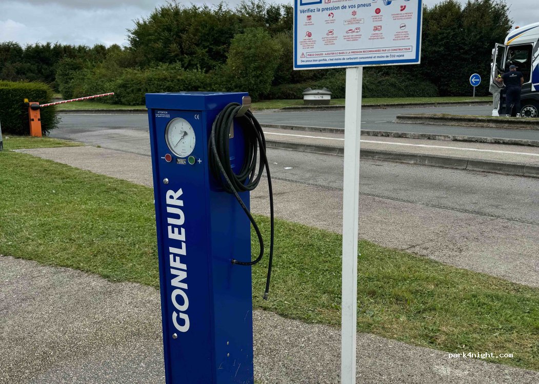 Si vous vous mettez près des sanitaires qui sont presque cachés au sud-est de l'aire, vous aurez plat, calme, sanitaires, eau. Parfait pour une nuit divisant un long trajet en deux. Attention, limité à 2m20 à cet endroit là.