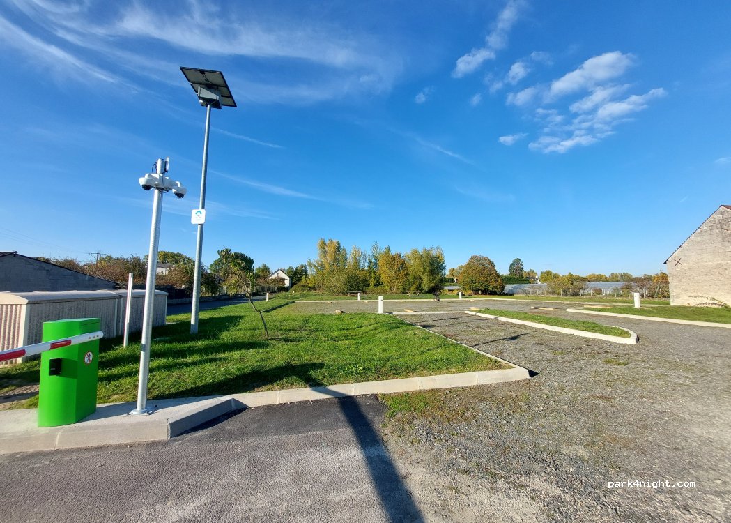 Pequeño aparcamiento de autocaravanas de pago en el Valle del Loira, cerca de Tours, en un pequeño pueblo rural. Cuenta con 16 parcelas, algunas conexiones eléctricas (6 amperios) y agua. También dispone de un punto de descarga. Los castillos de Villandry y Langeais están cerca. No se admiten vehículos con remolque ni vehículos de más de 9 metros de largo. Se admiten perros con correa.
