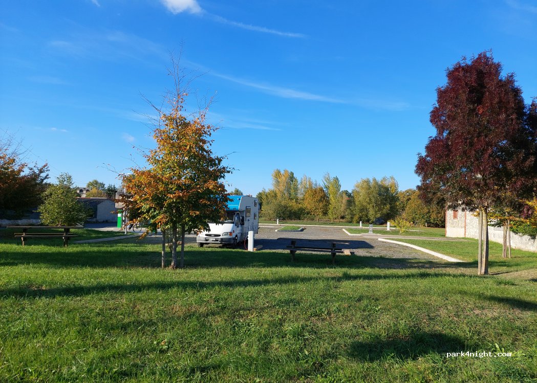 Petite aire de camping-cars payante dans le Val de Loire, non loin de Tours, dans un petit village de campagne. Elle dispose de 16 emplacements, de quelques branchements électriques (6 ampères) et d'eau. Une station de vidange est également à disposition. Les châteaux de Villandry et de Langeais sont à proximité. Les véhicules avec remorque ou de plus de 9 mètres de long ne sont pas autorisés. Les chiens tenus en laisse sont admis.