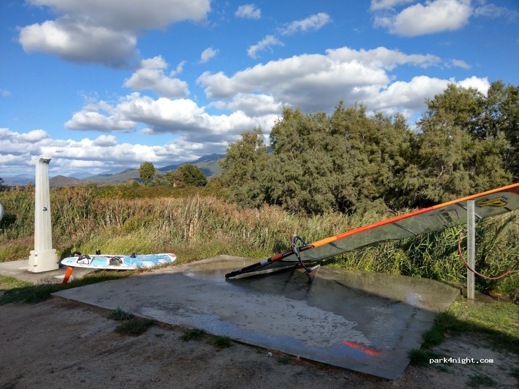 Camping molto spartano. Un po caro per i servizi offerti. Camper con 2 adulti e 2 bambine sopra i 7 anni con elettricita per 1 notte speso 48 euro. Posizione diretta sul mare. Spiaggia ventosa frequentata da kite surf.