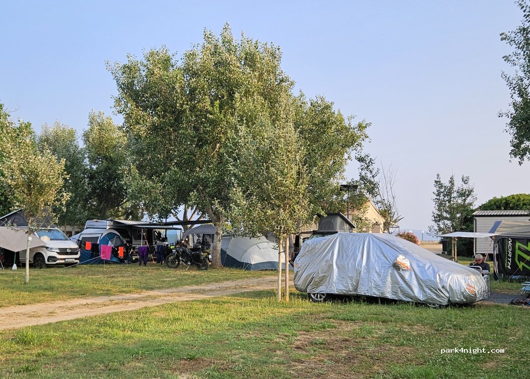 Place full of life, if you looking for quiet place that might be not for you,but campsite clean and with very nice owner who speak english ! nice bar view and fresh bakery in morning fully recomend. 31,50 eur for 2 adults and van el.