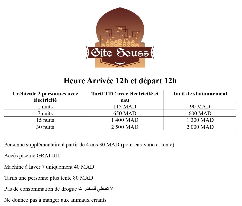 Ce camping de gîtes souss est génial ! Propre, organisé et les services sont excellents. J'ai vraiment apprécié l'expérience. Je le recommande vivement aux futurs visiteurs.