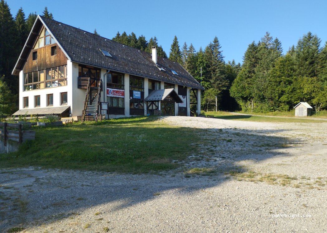 Grand parking devant un gîte de montagne. Vue splendide. Nuit au calme car personne dans le gîte. A voir lors d’un week-end. Pas de service