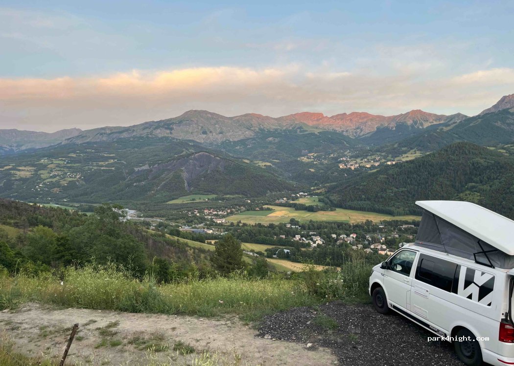 Très bon spot pour 1 (peut-être deux?) van au dessus de Barcelonnette. La vue est superbe. Juste un bémol, ce n’est pas à l’abri du vent pour les jours où ça souffle !