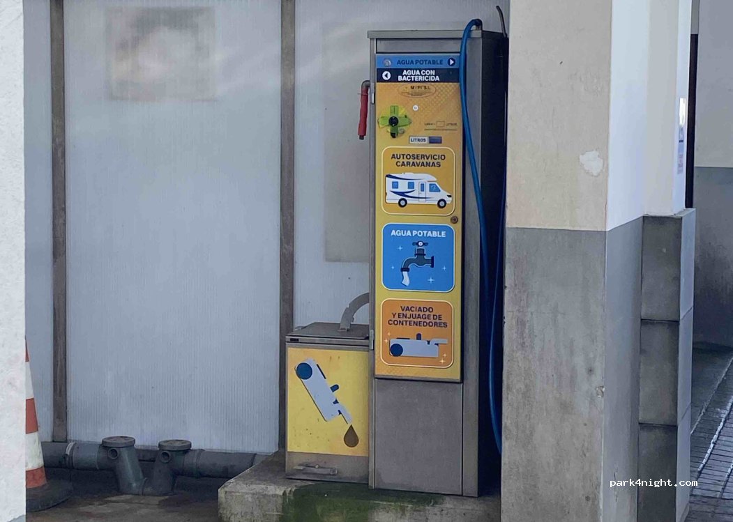 Station-service Repsol avec vidange des eaux grises et noires et eau potable moyennant un petit supplément.