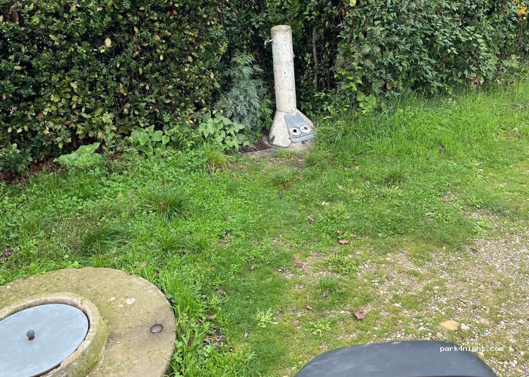 A le mérite d'exister. Un peu le dépôt de mobilier d'extérieur de la commune, entourée de locaux fortement dégradés. Vidange eaux grises uniquement par seau. Vidange wc dans un grand dévidoir pas très pratique, nuit tranquille. A 18 km du centre de Florence.