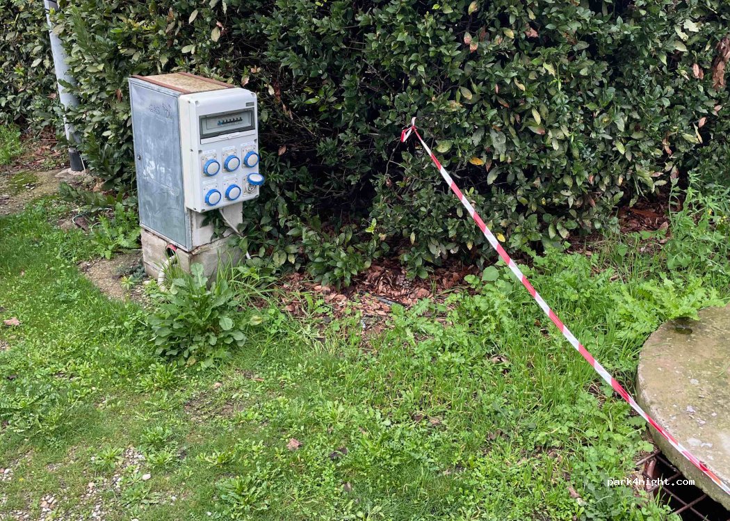 Parcheggio residenziale tranquillo con pochi posti, utilizzati più che altro dai residenti. Poche colonnine con corrente elettrica e disponibile una fontanina per il carico acqua. Il parcheggio sarebbe a pagamento ma a causa del parchimetro guasto per ora è gratis.