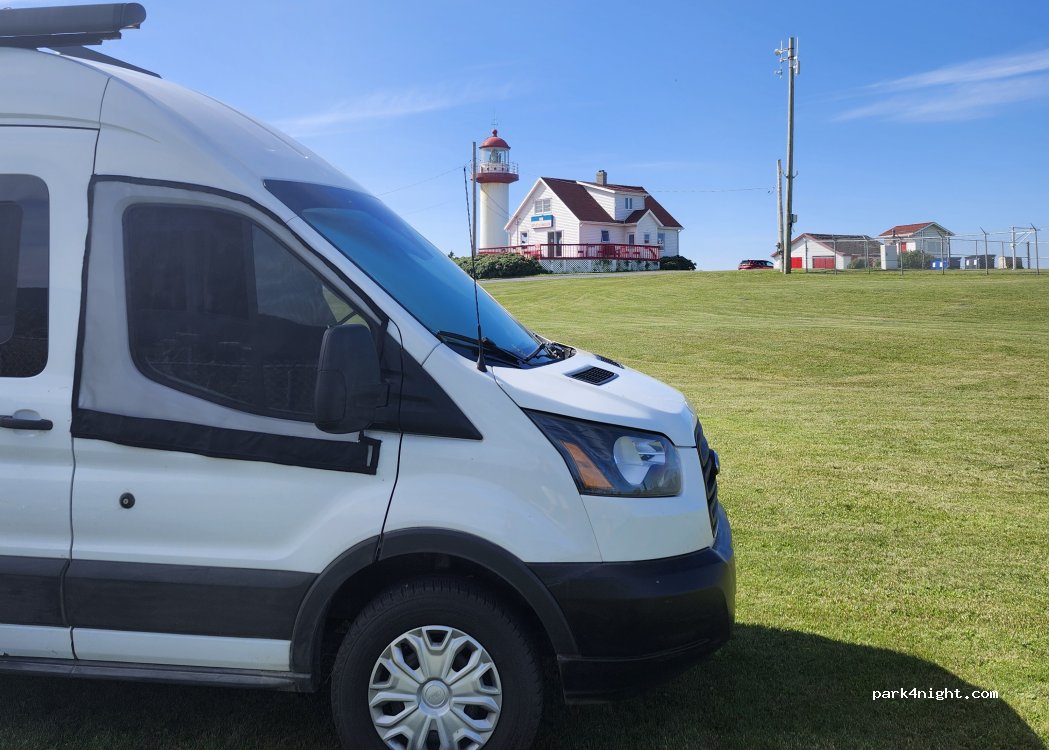 très belle endroit propre avec une belle vue sur l'eau, on peux aller dans le phare pour 5$, toilette, tranquille, table, beau coucher de soleil. 20$ la nuit, je recommande