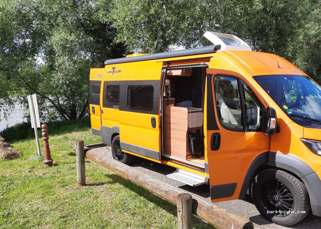 Endroit calme et sécurisé sur un parking en macadam. Vue sur la Moselle. Réveillée aux chants des canards et oiseaux. Idéal pour une nuit étape!