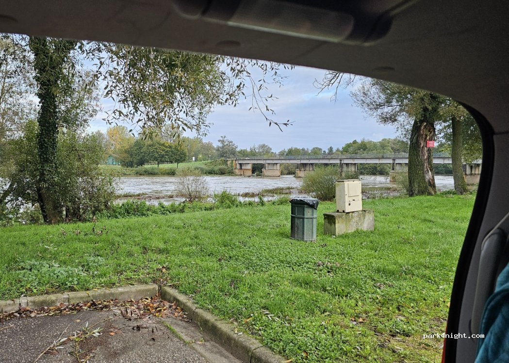 Lugar muy tranquilo para pasar la noche. No hay ruido, es seguro y hay más autocaravanas y campers. Junto al río. Dormimos aquí de camino a Reims