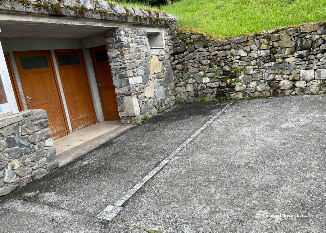 Une bonne étape nocturne avant le passage en Espagne par le Somport. Calme malgré le passage en contrebas du parking de quelques poids lourds qui font du transit international. Ne pas oublier de passer à l’agence postale qui fait également office d’épicerie bien achalandée. Patron bien sympa avec son accent rocailleux. Eau et WC à proximité.