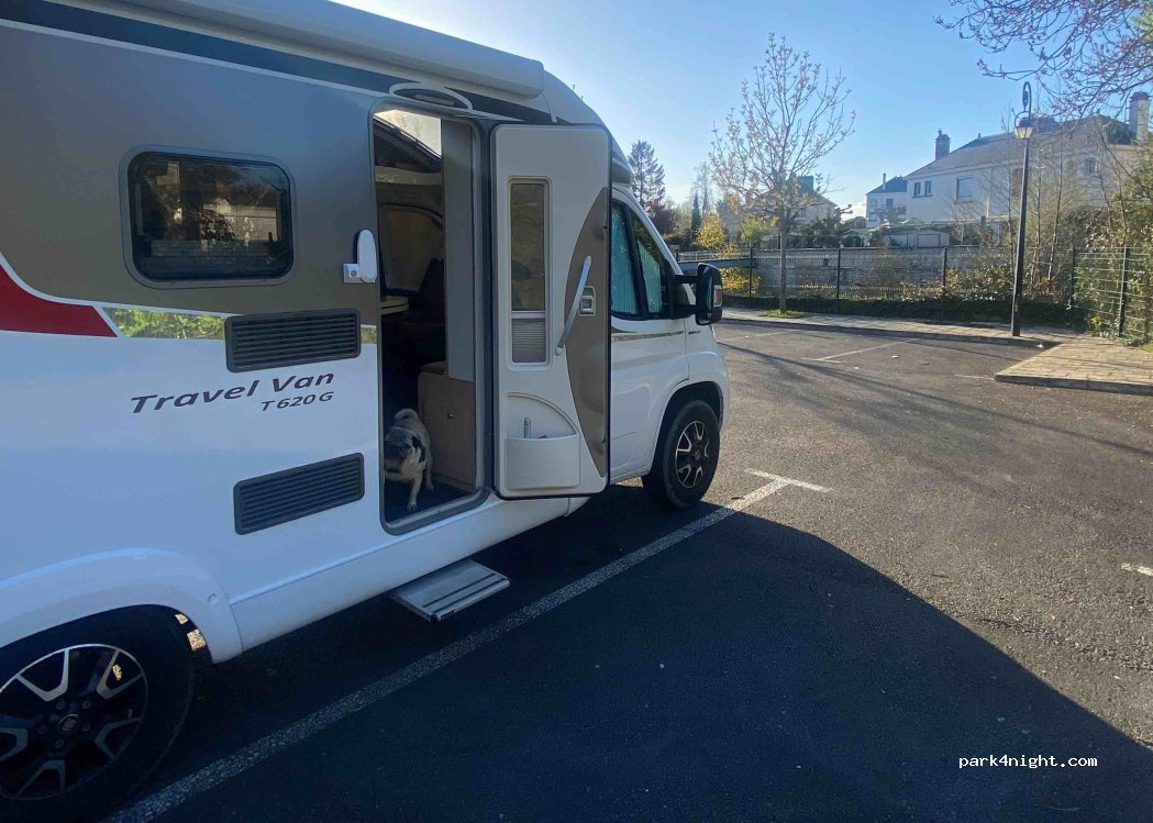 en transit, avons passé une nuit très tranquille, à éviter pour les très gros cc car route d'accès à sens unique et un peu étroite, mais avec notre 6m ça passe facile. Propre, plat, goudronné, éclairage qui s'éteint à 23h. 32 places de parking voiture, nous étions seul.