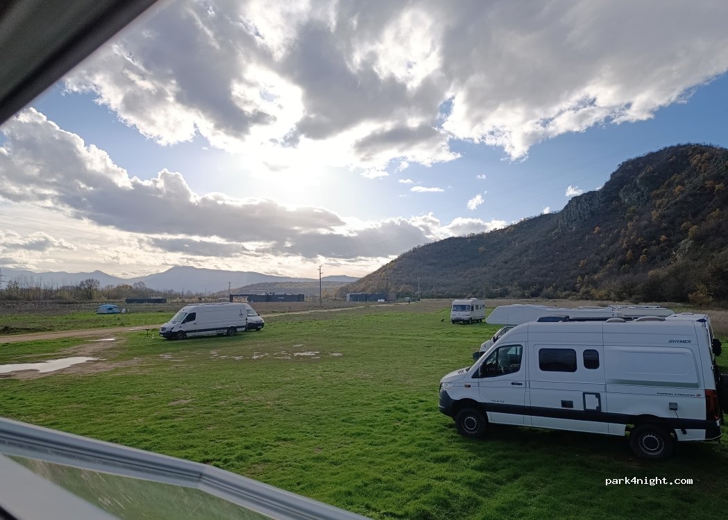 Beautiful, large space for many campervans, motorhomes, RVs and the like. Obviously with the free thermal springs