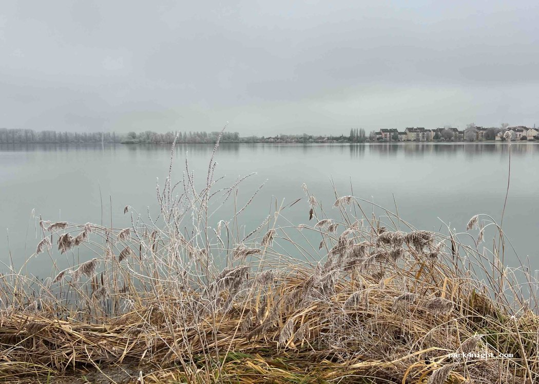 Lac gelé avec super luminosité le matin, toilettes fermées à cette époque.