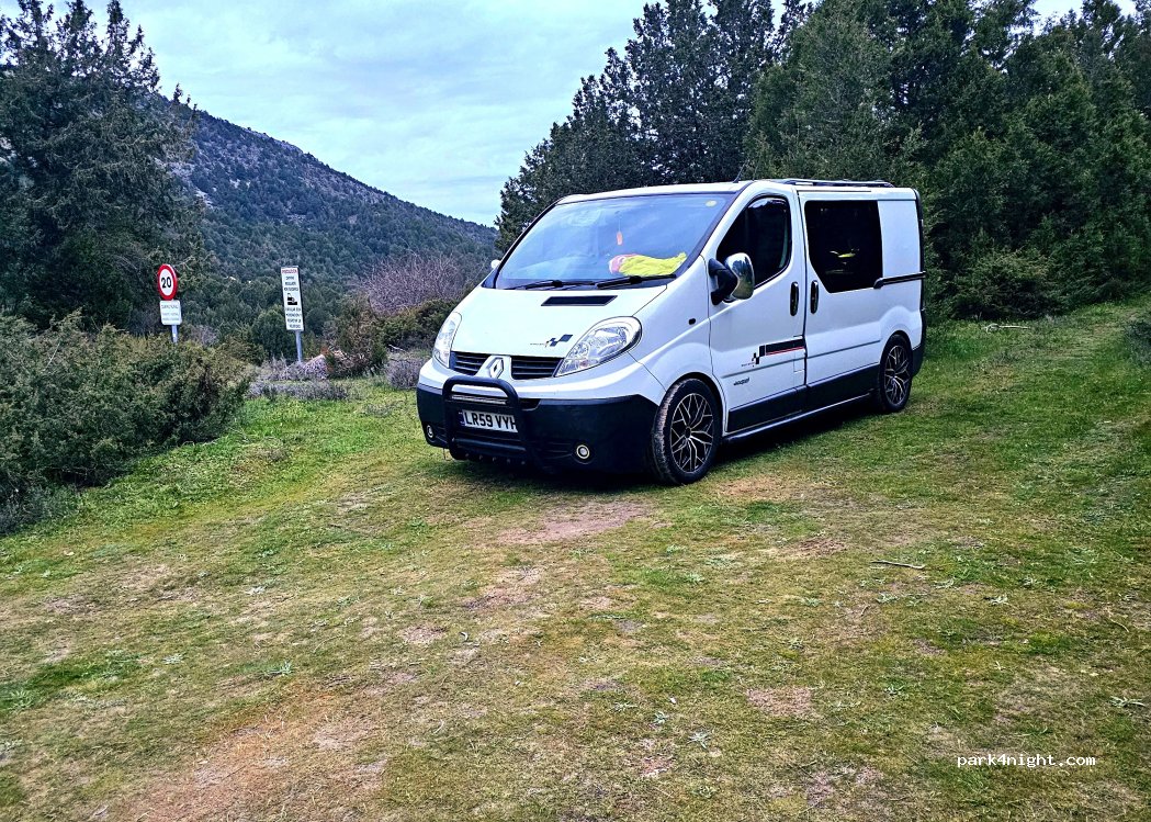 No se indica como tal aparcamiento con ninguna señal, pero tampoco prohibido, pero en google si aparece como aparcamiento, hay papeleras cercanas en los pueblos de Contreras y Santo Domingo, el espacio esta algo sucio por personas que no entienden que es un entorno natural… para pernoctar sin nadie alrededor es perfecto!